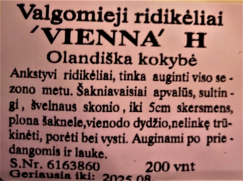 Valgomiej ridikėliai Vienna H (Gigantai)200 sėklų ( Raphanus sativus var. sativus)